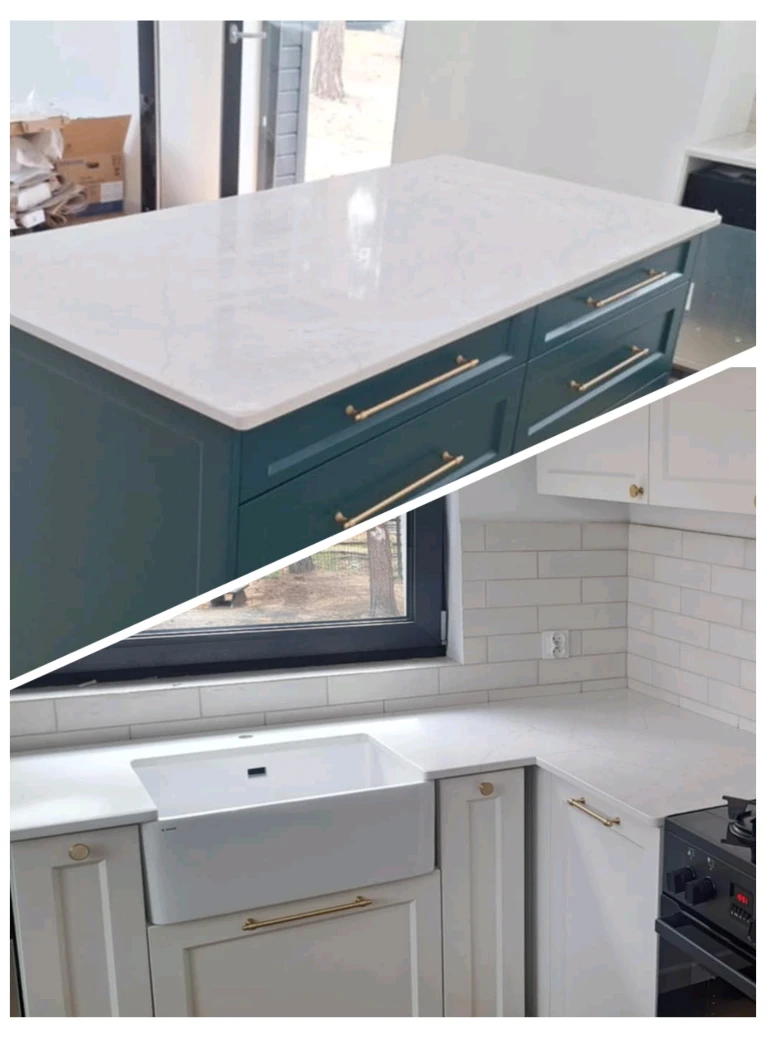 - Wysoka trwałość i odporność na uszkodzenia mechaniczne blatu kuchennego i łazienkowego z konglomeratu kwarcowego.